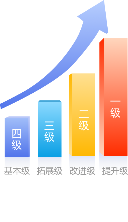 自低向高分别为四、三、二、一级,分别对应基本级、拓展级、改进级和提升级